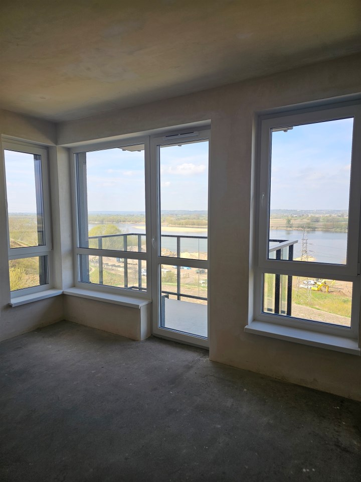Mieszkanie w stanie deweloperskim daje pełną wolność aranżacji, a balkon pozwala cieszyć się widokiem na panoramę Wisły oraz Most Grudziądzki.