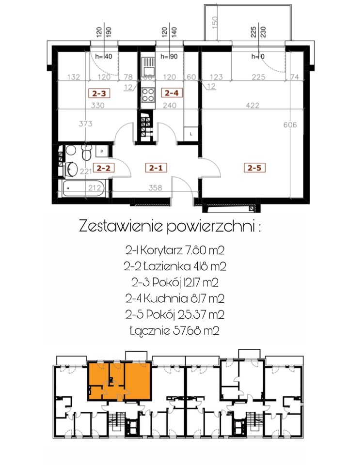 Powierzchnia mieszkania: 57,68 m²